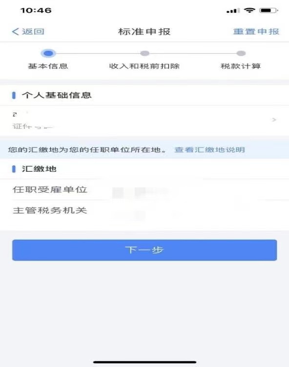 第四步:确认“个人基础信息”“任职受雇单位”,确认无误点击“下一步”