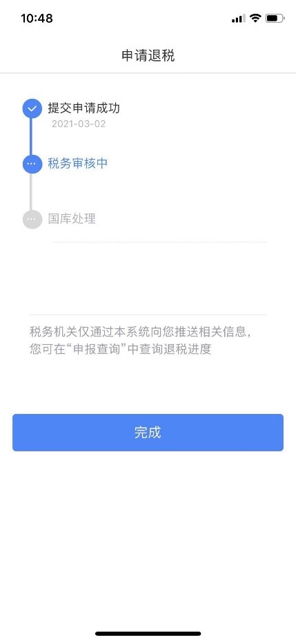 第七步:提交成功后,待税务审核和国库处理后,退款即可到账。